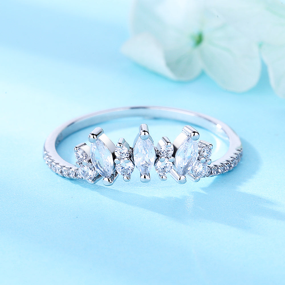 Elevate your elegance with the Sterling Silver Eternity Marquise-cut Crown Ring with Crystals — a stunning blend of timeless sophistication and regal charm. Crafted from genuine 925 sterling silver, this ring features a continuous row of dazzling marquise-cut crystals, each carefully prong-set to catch and reflect light with every movement. The crown-inspired design adds a royal touch, making it a perfect statement piece for any occasion, whether you're dressing up for a special event or adding sparkle to your everyday look.