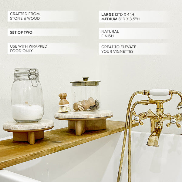 Bring one-of-a-kind charm to your home with our Stone Top Wood Round Decorative Risers, Set of Two, offered at an out-of-this-world price! These unique risers blend the natural elegance of smooth stone tops with the rustic warmth of wooden bases. Perfect for displaying wrapped treats or stylish accents, they’re the ideal way to elevate your decor without breaking the bank.