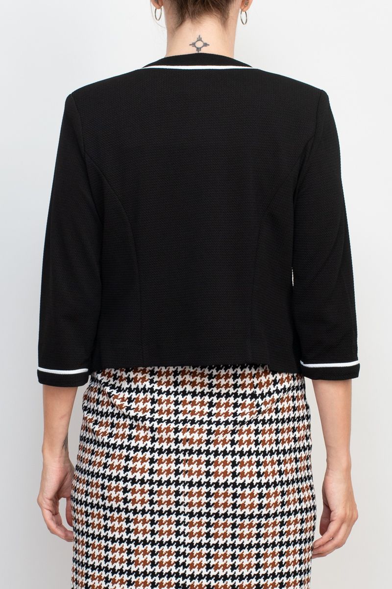 This exquisite ensemble from Studio One will elevate your wardrobe to new levels of sophistication. An elegant bodycon dress with a chevron pattern knit is paired with an open-front jacket with three-quarter sleeves to create a timelessly chic look for any occasion. Crafted for luxurious comfort and tailored to flatter, this outfit will ensure you look remarkable.