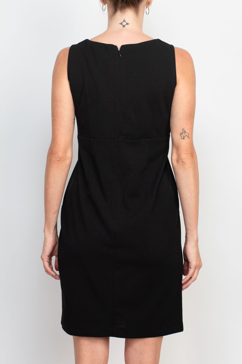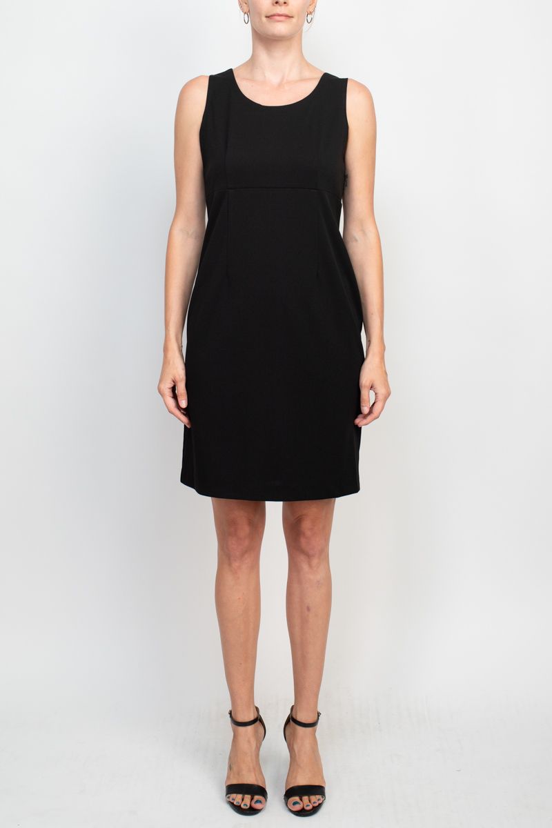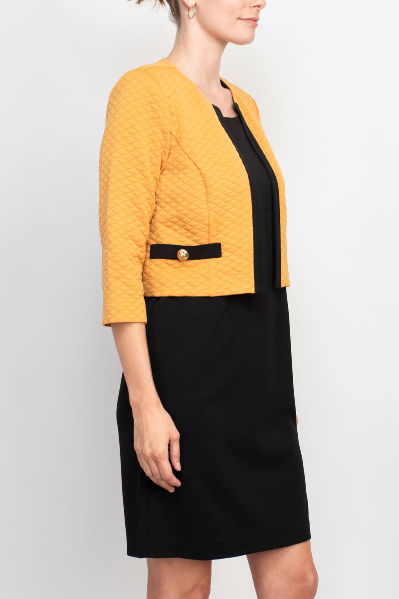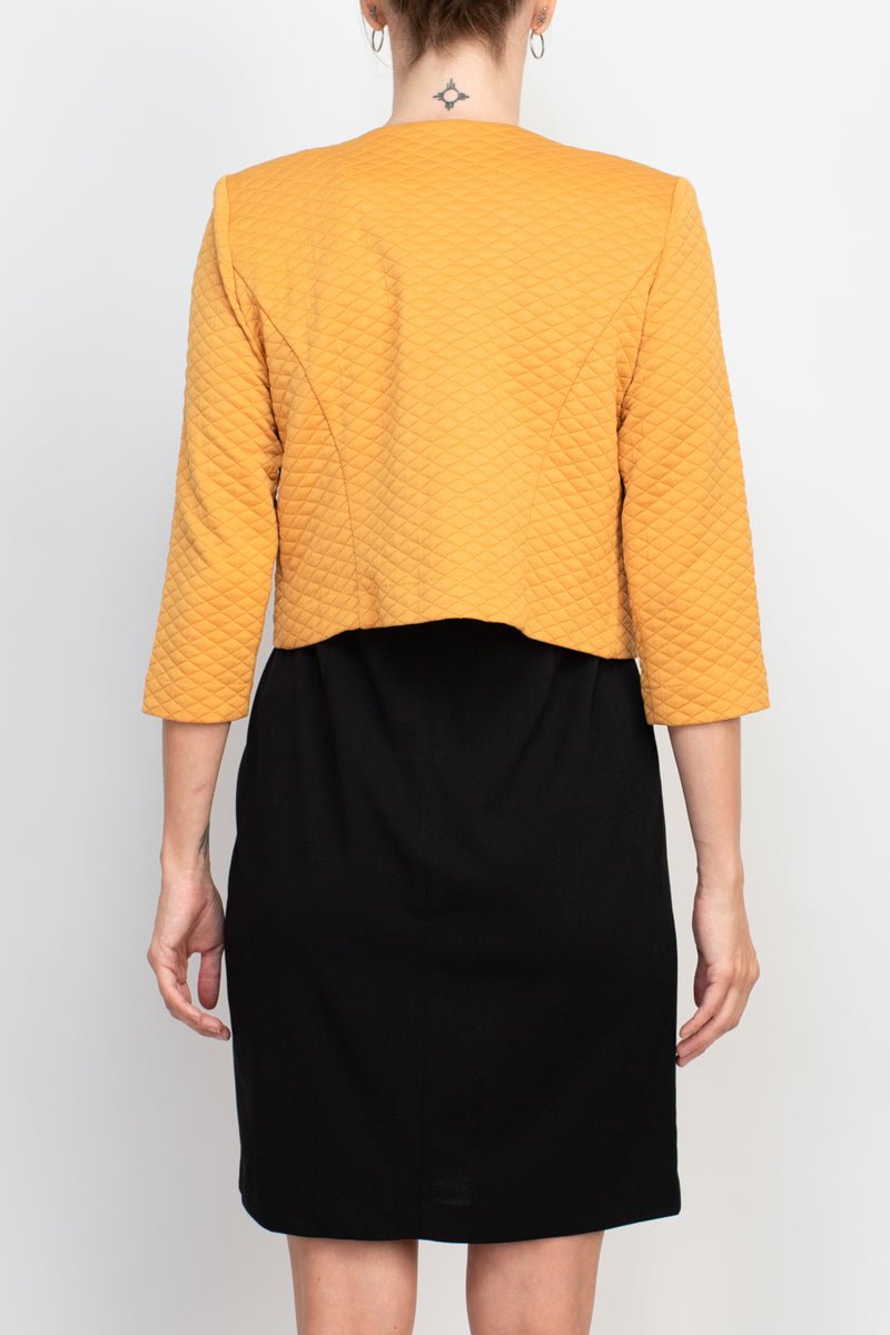 Look your best in this sophisticated two-piece ensemble from Studio One. Crafted from a stretch crepe fabric and tailored to a bodycon fit, the sleeveless dress features a scoop neck and a zipper back for a fashionable edge. The ¾ open front quilted jacket completes the look, providing warmth and luxurious texture. Elevate your wardrobe with this timelessly stylish combination.
