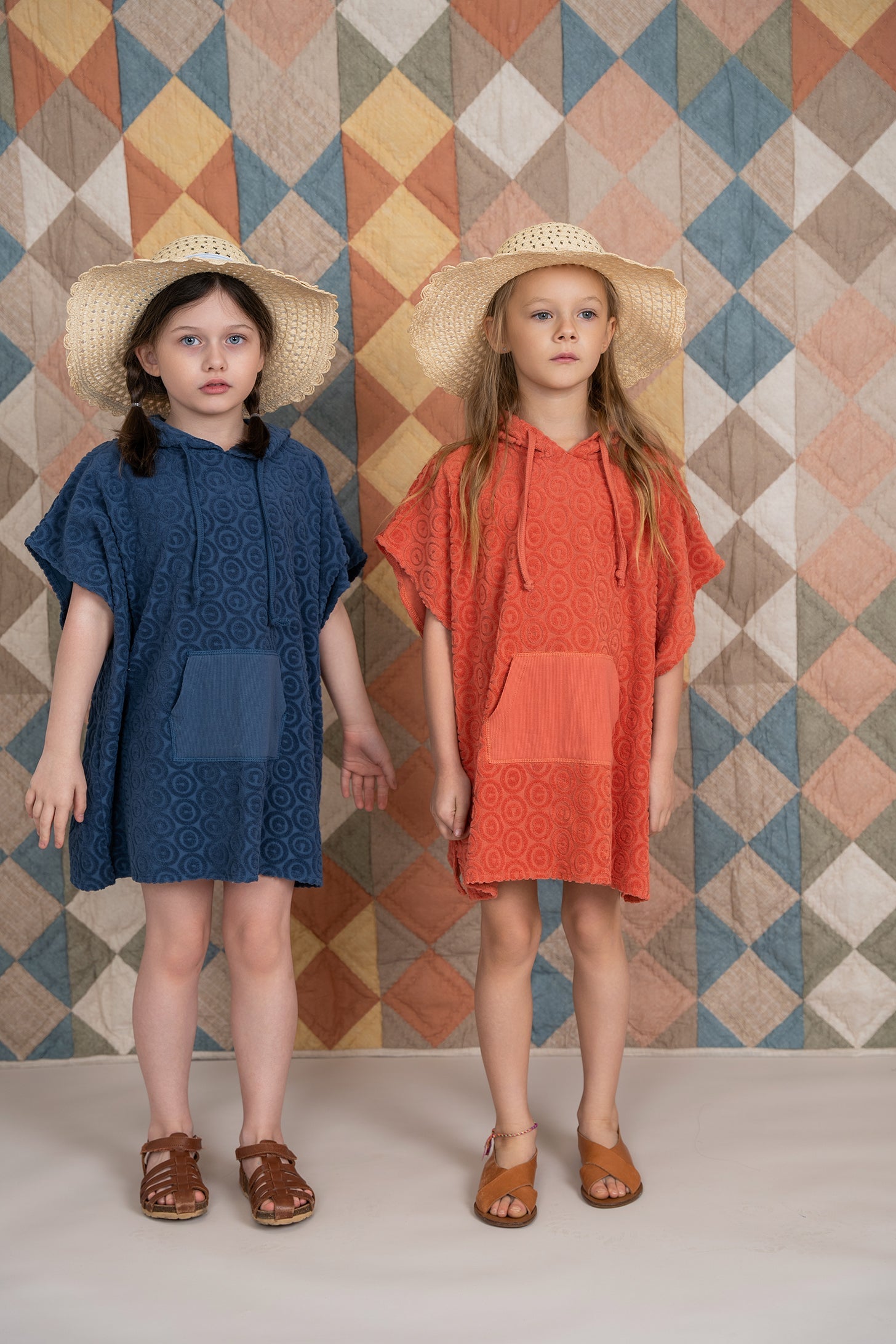 Baby boys and baby girls cotton terry poncho with hood and center back star print with kangaroo pocket at front.ֲ