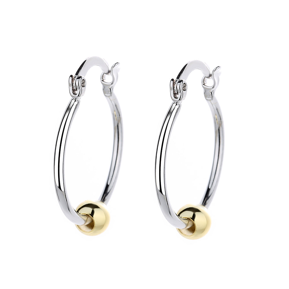 The earrings are made of high-quality metal with a two-tone gold finish, giving them a sleek and sophisticated look. The combination of the two-tone gold finish and the small gold beads creates a stunning contrast that is both eye-catching and elegant.
